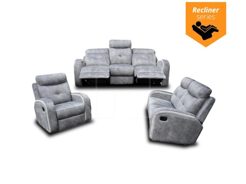 Sumptuously soft seats and plump back cushions, the JEFFERY Full Recliner sofa set is featured in Water Repellent Velvet. The ultimate in lounge-room luxury. Just one flick of the built-in recliner mechanism and you can lift your legs and kick-back for instant relaxation.