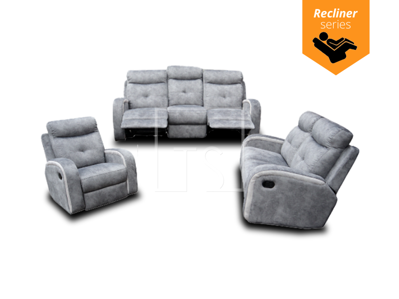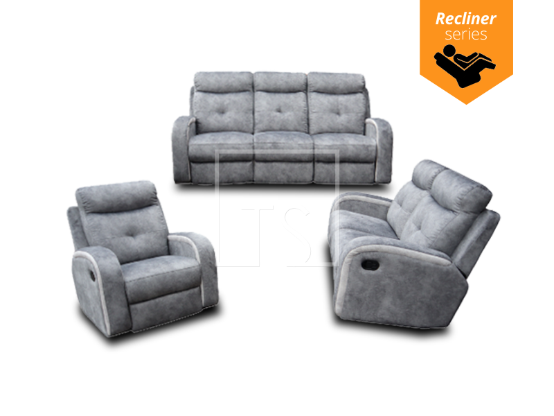 Sumptuously soft seats and plump back cushions, the JEFFERY Full Recliner sofa set is featured in Water Repellent Velvet. The ultimate in lounge-room luxury. Just one flick of the built-in recliner mechanism and you can lift your legs and kick-back for instant relaxation.