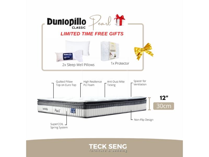 Quality product by Dunlopillo Malaysia. A new mattress for those who value proper back care! The all-new Dunlopillo Classic Pearl Mattress is the perfect choice for anyone who prefers lasting comfort with firm, supportive design.
