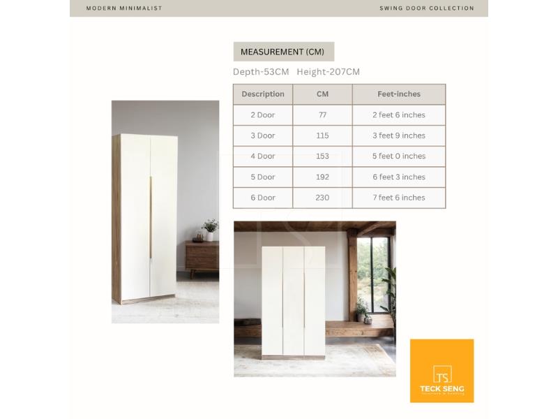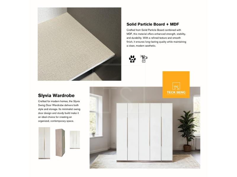 The Slyvia Swing Door Wardrobe showcases modern minimalist elegance with its clean lines and refined finish. Designed for practicality and style, it offers ample storage space while blending seamlessly into contemporary living spaces.