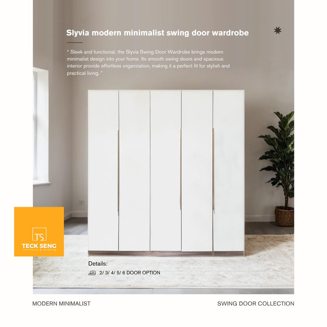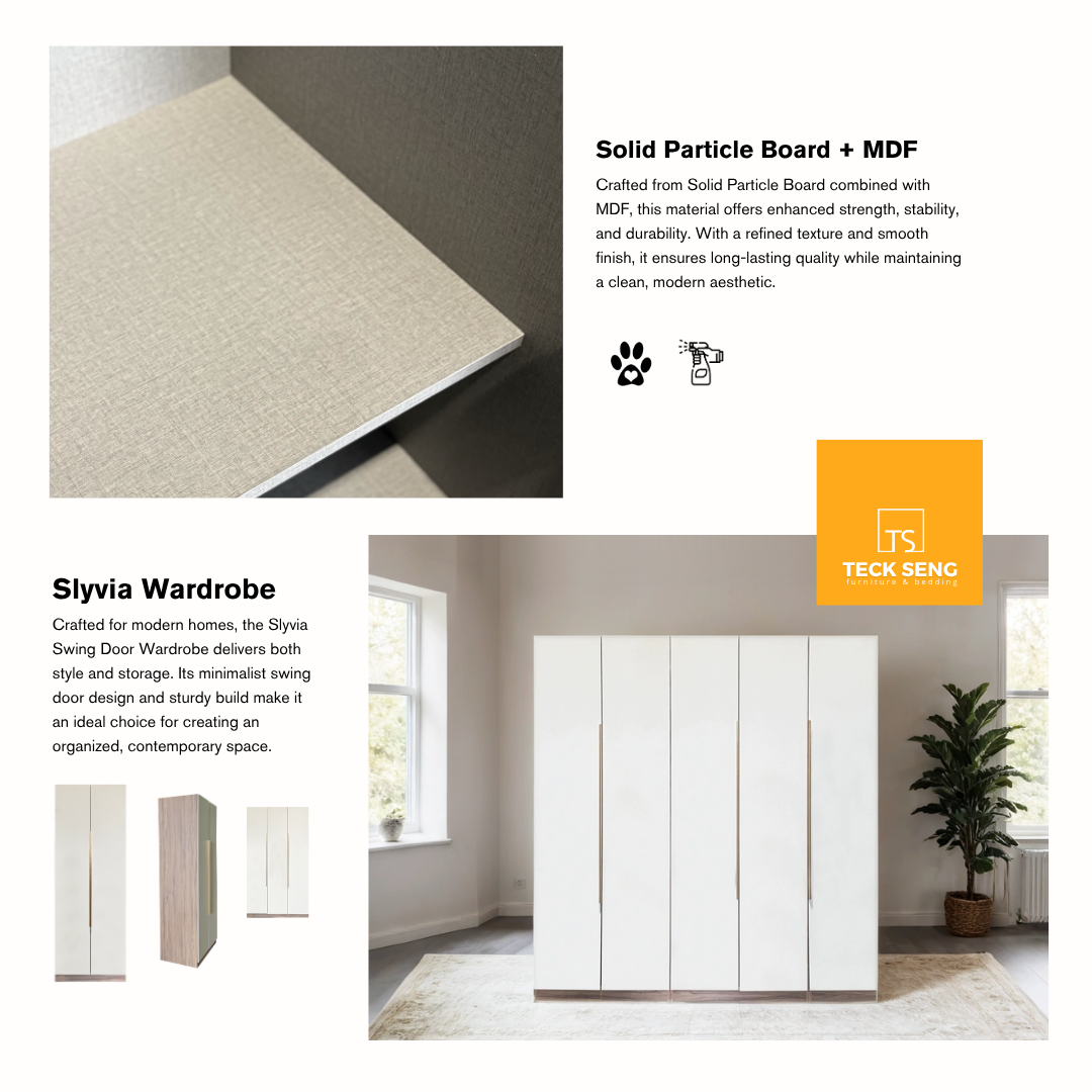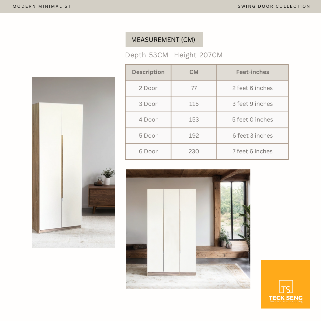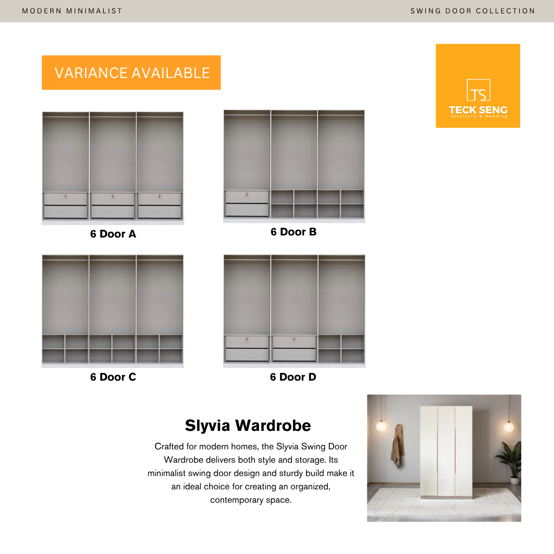 The Slyvia Swing Door Wardrobe showcases modern minimalist elegance with its clean lines and refined finish. Designed for practicality and style, it offers ample storage space while blending seamlessly into contemporary living spaces.