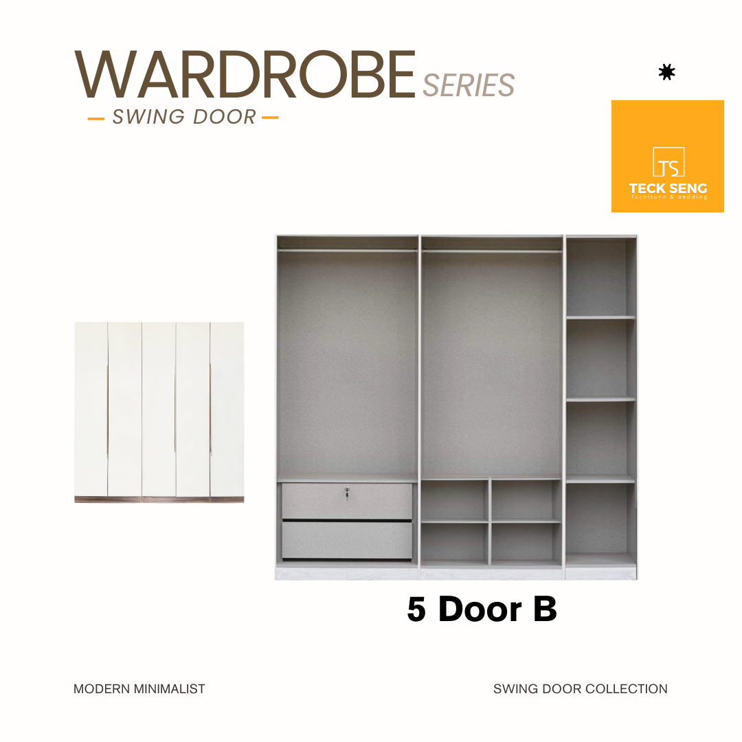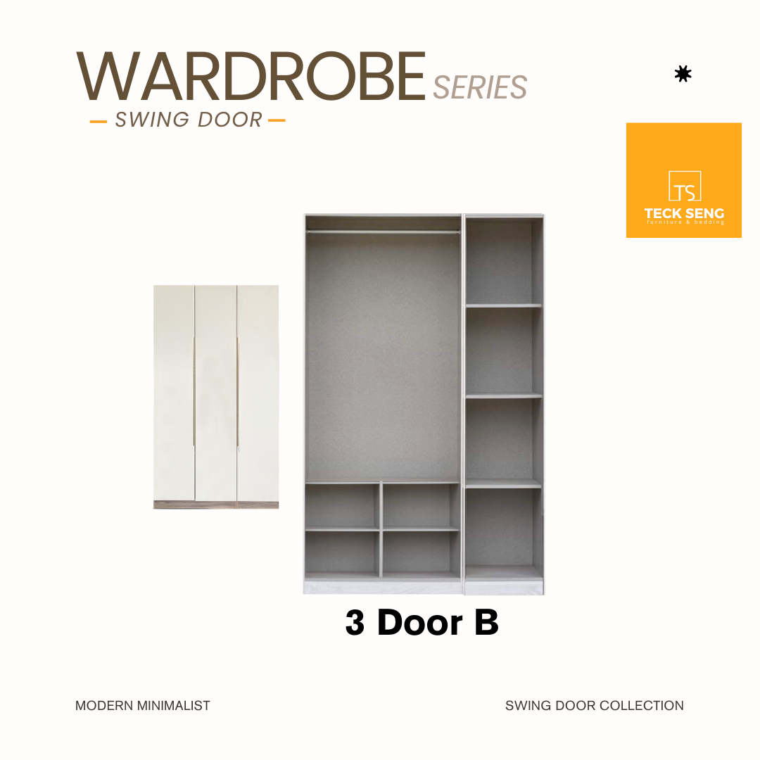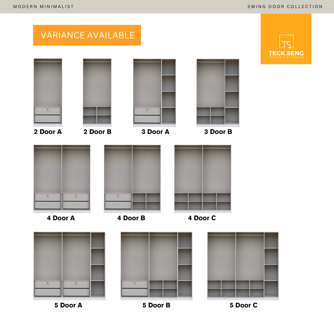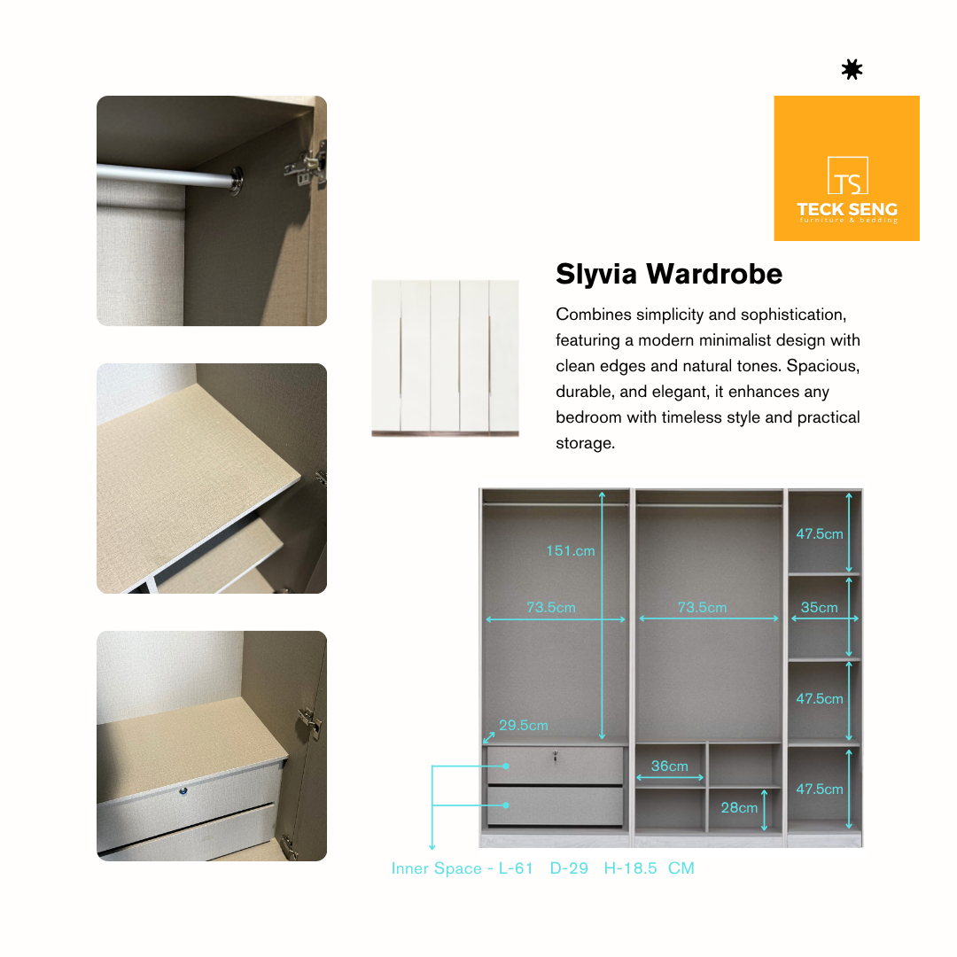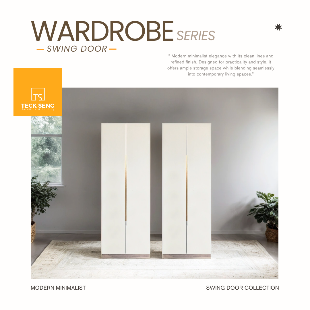 The Slyvia Swing Door Wardrobe showcases modern minimalist elegance with its clean lines and refined finish. Designed for practicality and style, it offers ample storage space while blending seamlessly into contemporary living spaces.