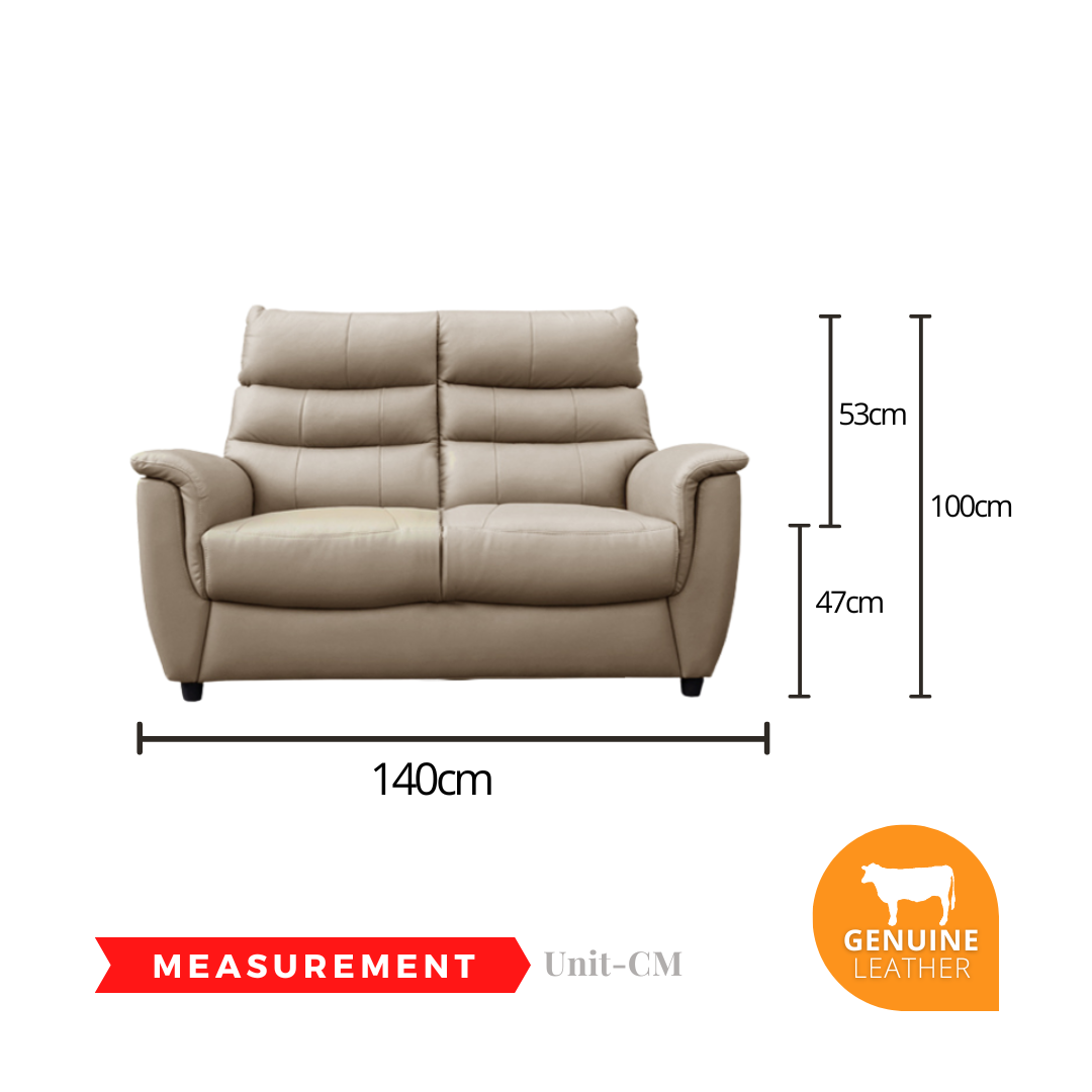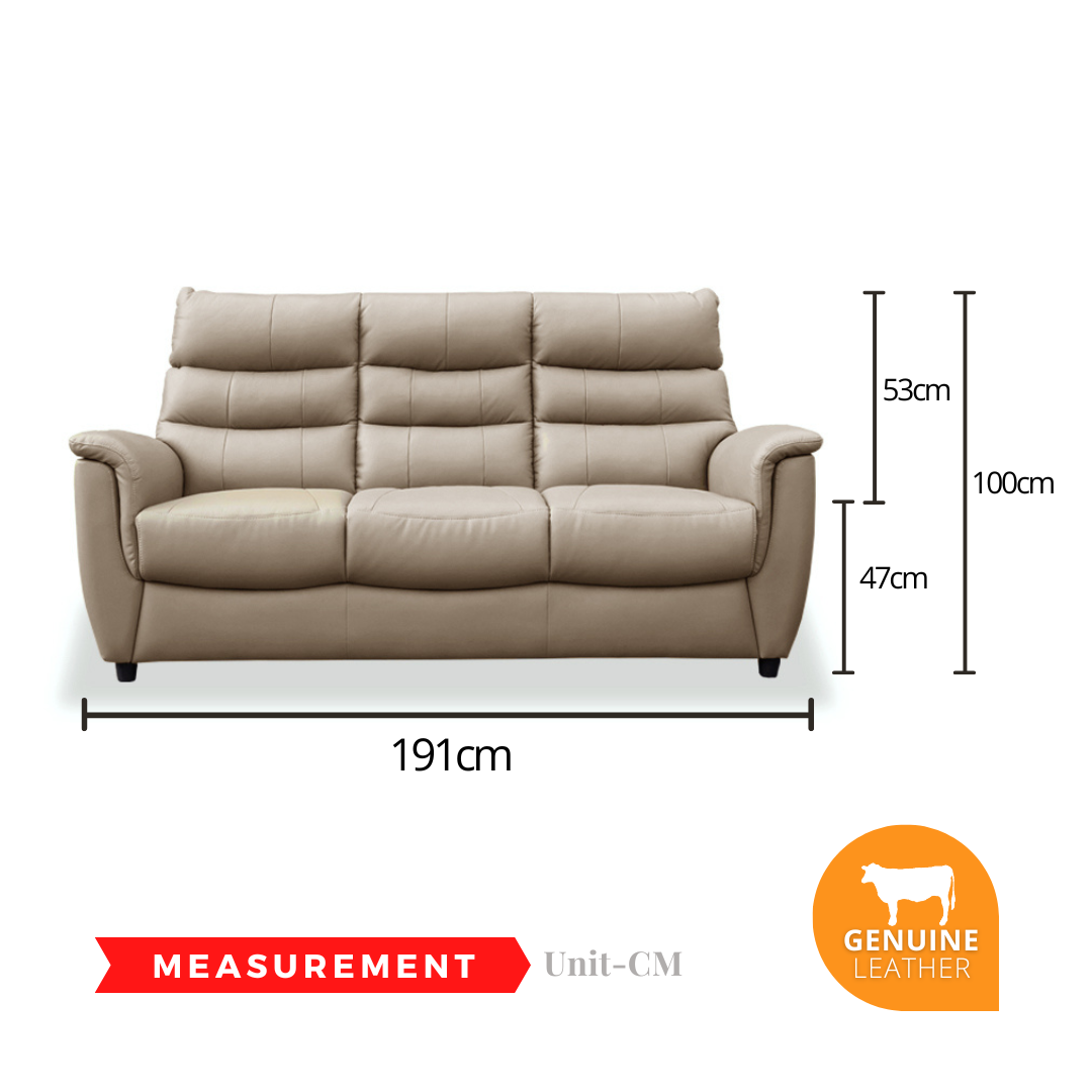 Featured in genuine cow-hide leather with sumptuously soft seats and plump back cushions.