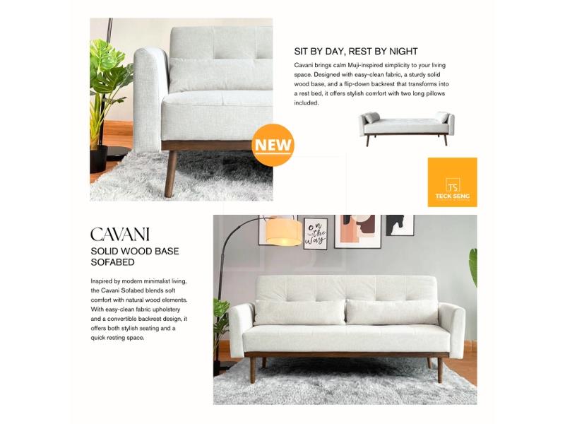 Inspired by modern minimalist living, the Cavani Sofabed blends soft comfort with natural wood elements. With easy-clean fabric upholstery and a convertible backrest design, it offers both stylish seating and a quick resting space.