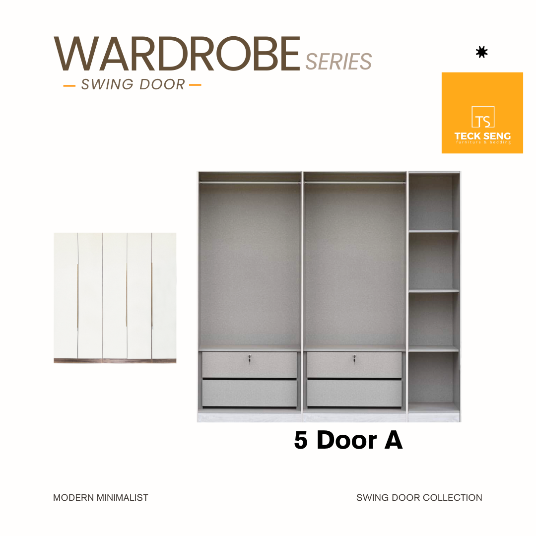The Slyvia Swing Door Wardrobe showcases modern minimalist elegance with its clean lines and refined finish. Designed for practicality and style, it offers ample storage space while blending seamlessly into contemporary living spaces.